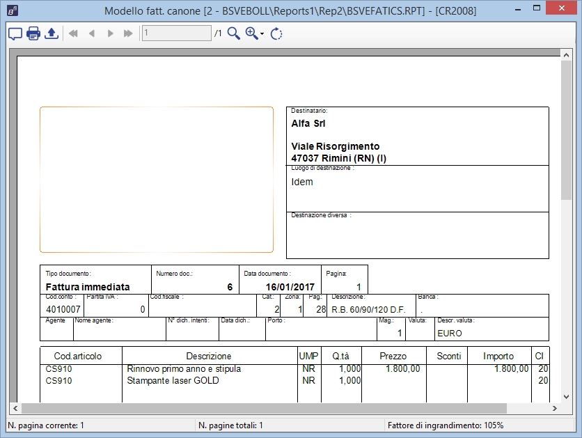 Generiamo come prima la fattura ma questa volta la stampiamo con il modello rprot appena creato