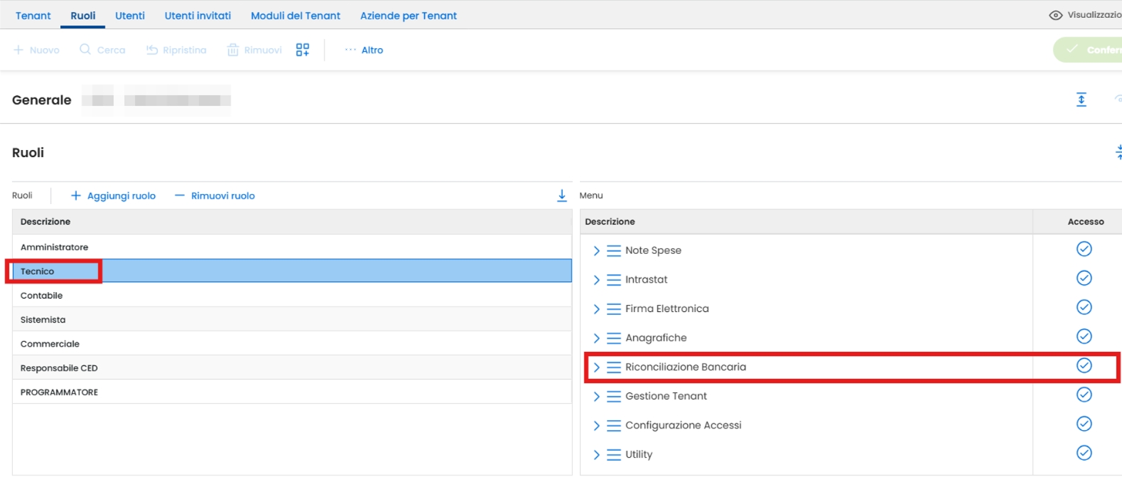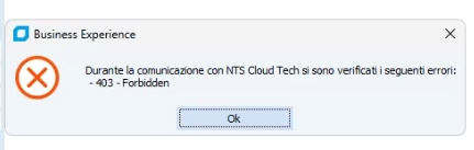 In tal caso occorre verificare in NCT che l'utente utilizzato per l'importazione dei dati abbia impostato un ruolo con abilitato l'accesso "Riconciliazione Bancaria".