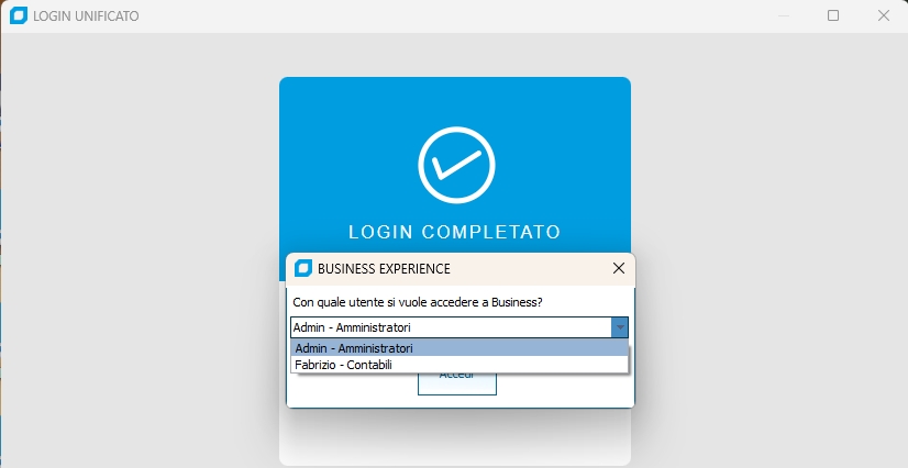 In questi casi durante la login unificata il programma mostrerà una modale con la richiesta di scegliere con quale operatore accedere.