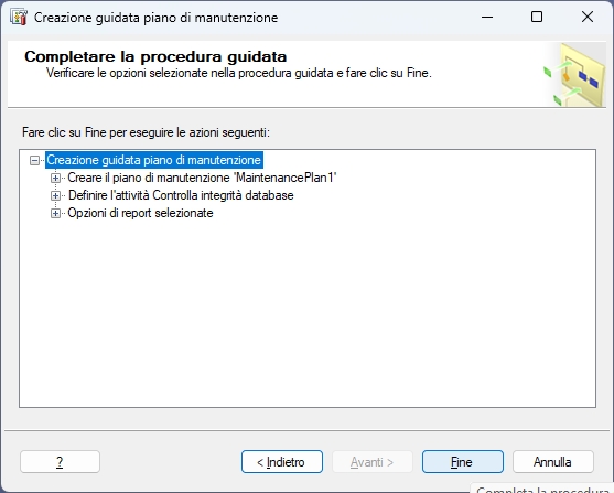 Impostare un piano di manutenzione in Management Studio