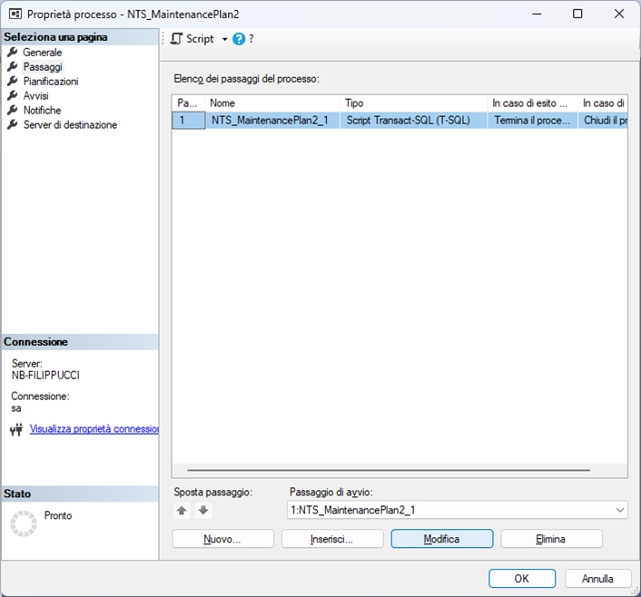 Anche qui una volta confermato il piano lo troviamo in SSMS per eventuali modifiche