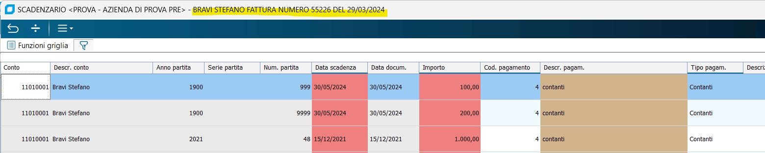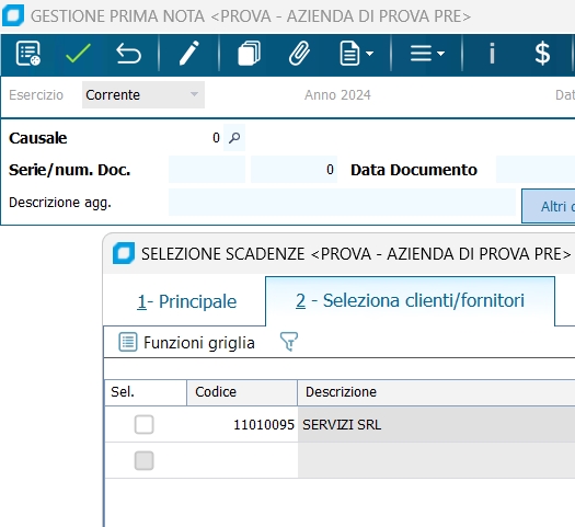 Se il programma trova corrispondenza, restituisce il codice in selezione dei clienti/fornitori all'interno della form di selezione delle scadenze.