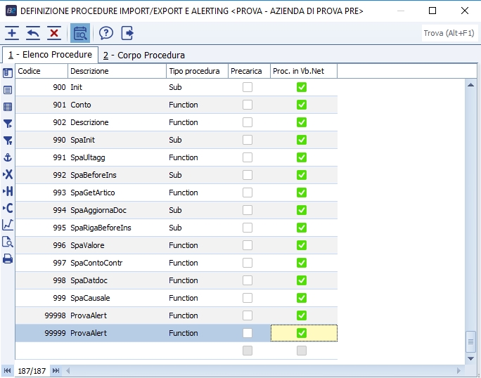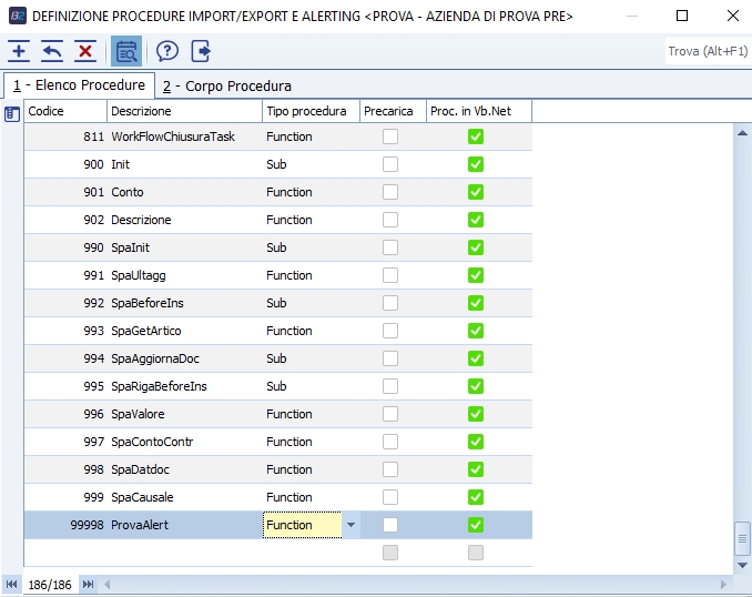creare la procedura 99998, con la spunta di procedura .NET