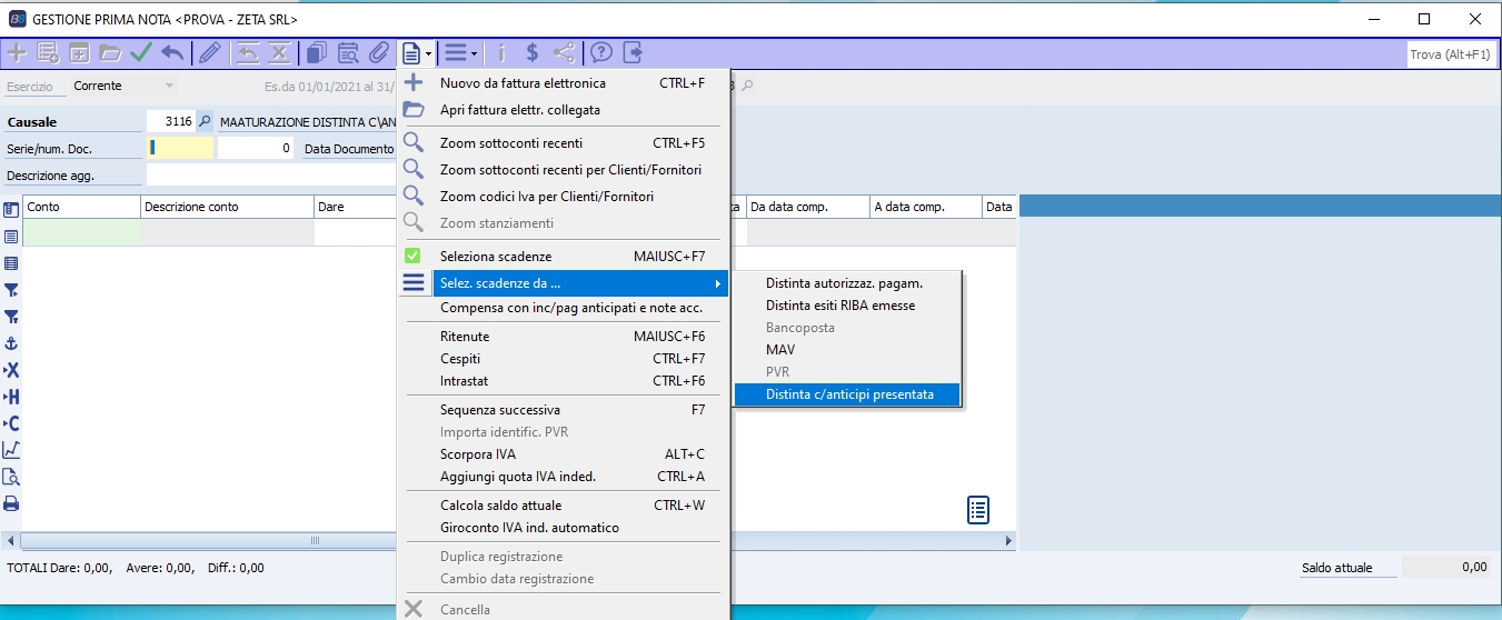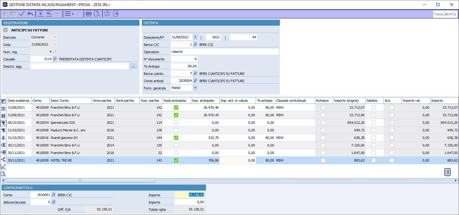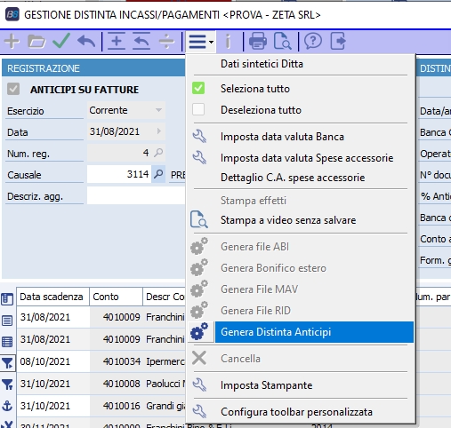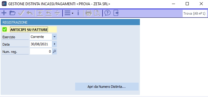 E' stata aggiunta la possibilità di inserire nuove distinte di anticipi su fatture ma anche di aprire distinte già inserite