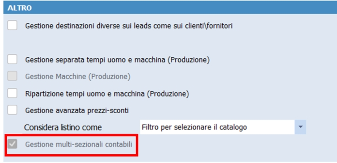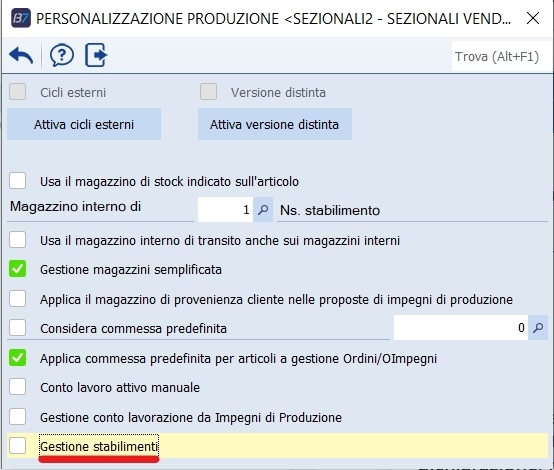 con tale gestione bisogna abilitare da personalizzazione produzione il flag