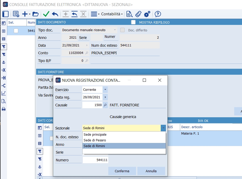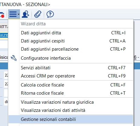 Ogni volta che entriamo all'interno dei programmi precedentemente indicati, il sezionale attivo è quello collegato all'operatore corrente (= quello associato alla propria destinazione)