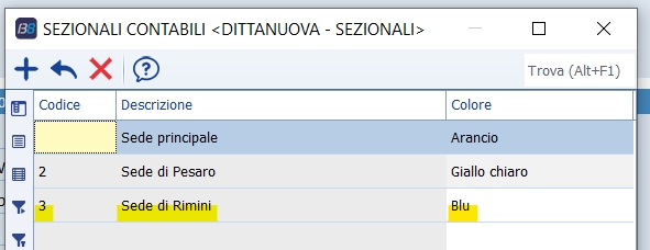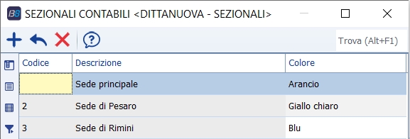 N.B Nel momento in cui lavoro su alcuni programmi, riesco a capire su che sezionale sto lavorando (sezionale attivo) in base all'intestazione della form del programma associata al colore indicato in anagrafica ditta/strumenti/gestione sezionali contabiliti.