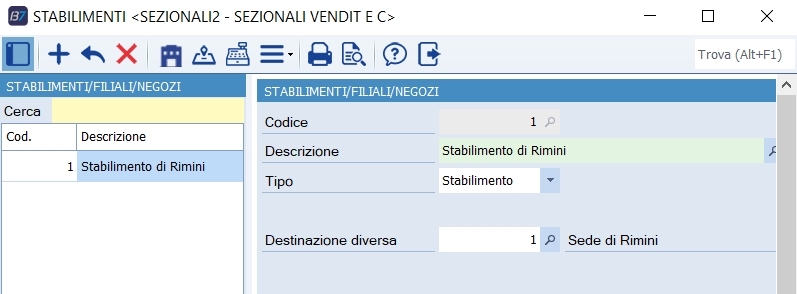 La sede principale è il sezionale di default " " (spazio) che corrisponde al valore di default del campo. In questo modo, come indicato precedentemente, non devono essere aggiornate le tabelle prinot, scaden e anazul perché le registrazioni/scadenze/destinazioni ditta vengono già tutte considerate come riferite alla sede principale.