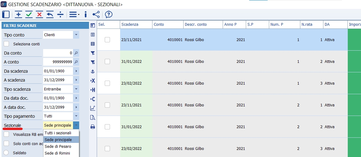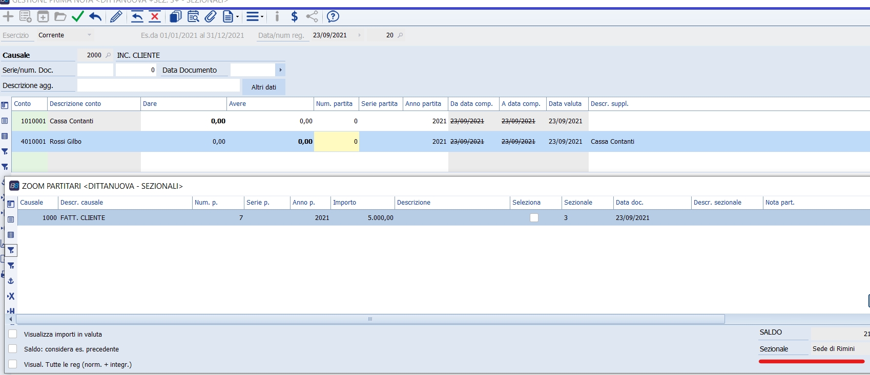In ugual modo, saldando le scadenze/partite, vengono mostrate nello zoom solo quelle relative al sezionale su cui si sta lavorando.