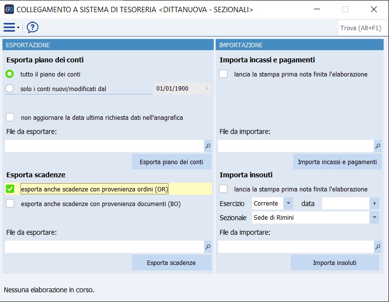COLLEGAMENTO A SISTEMI DI TESORERIA Anche il programma collegamento a sistemi di tesoreria è stato toccato dalla gestione dei sezionali, infatti da tale programma oltre che svolgere registrazioni di incassi/pagamenti è possibile anche fare registrazioni di insoluti filtrando per sezionale.