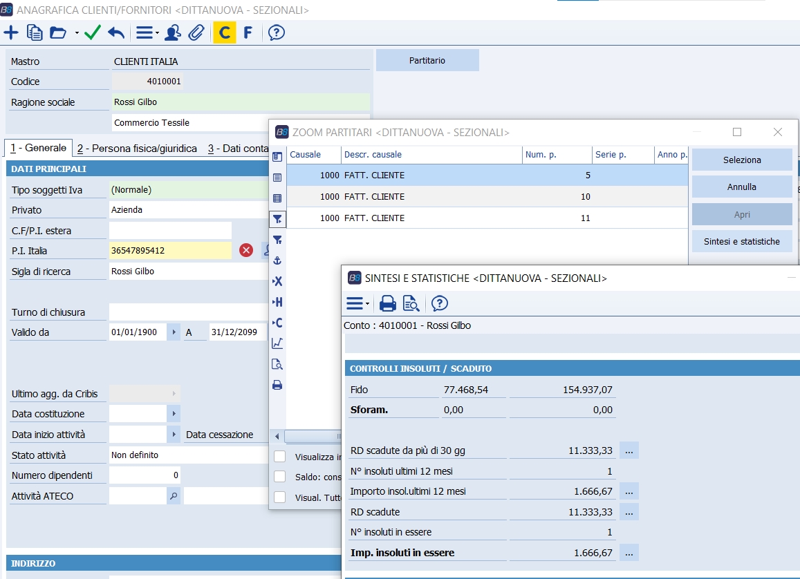 SINTESI E STATISTICHE Da anagrafica clienti/fornitori --> Sintesi e Statistiche, nei seguenti campi il totale degli importi è di tutti i sezionali: