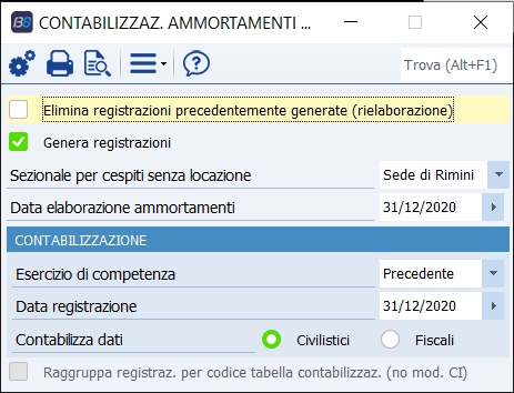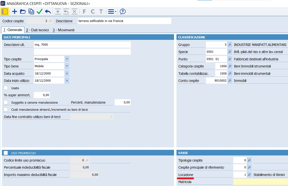 In ugual modo, dal programma contabilizzazione ammortamenti, il codice del sezionale è assegnato in base al codice locazione presente sull'anagrafica del cespite (vedi imm. prec)