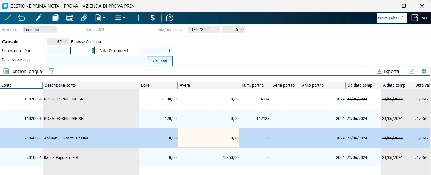 Esempi di registrazioni di prima nota | |||