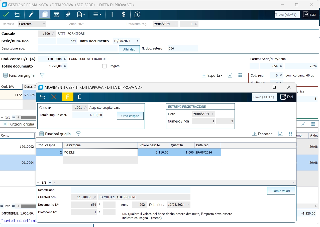 Per gli incassi relativi a fatture di clienti il procedimento è del tutto analogo: si consiglia in tali casi di registrare prima il cliente in avere e poi le contropartite cassa, banca e/o abbuoni. 9 - Acquisto di un cespite ad uso promiscuo. Quando registro l'acquisto, la parte di IVA indetraibile è aggiunta al costo del cespite, e gode delle modalità di deduzione fiscale previste per il cespite cui si riferisce (e di cui costituisce onere accessorio). La parte indeducibile del cespite è invece impostata dall'anagrafica cespite, utilizzando i limiti previsti dalla "percentuale di indeducibilità fiscale" o quelli preimpostati nella tabella "codice limite uso promiscuo"
