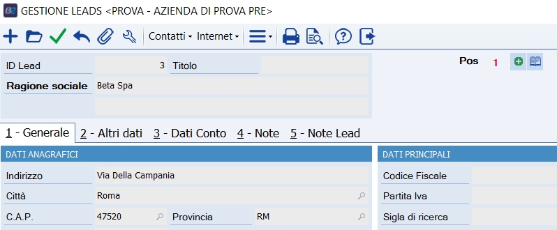 L'integrazione fra CRM e Business Social permette l'impostazione di relazioni con i Leads (visibilitā limitata in base ai permessi CRM).