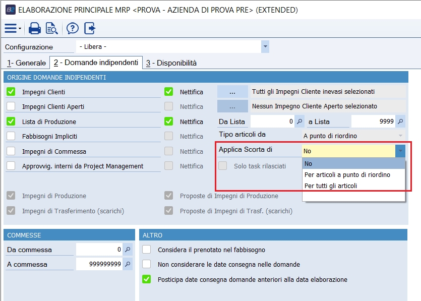 Se l'articolo\magazzino\fase\commessa è gestito con una delle politiche a riordino ed abbiamo attivato l'opzione: