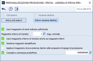 Identifichiamo a seguire in ordine logico i parametri configurabili in personalizzazione di produzione e relativi al recupero del magazzino di carico di MRP: