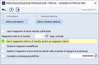 Per ottenere il medesimo comportamento anche nel caso in cui il deposito indicato per il fabbisogno implicito sia interno dovremo attivare anche la scelta "Usa il magazzino interno di transito anche sui magazzini interni".