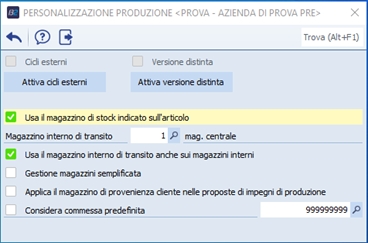 Con l'attivazione della "Gestione Semplificata" dei magazzini si è inteso semplificare il recupero del magazzino di carico e di produzione.