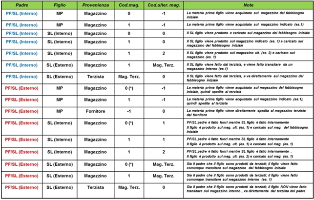 • Magazzino del fabb. primario (è il padre che decide su che magazzino verrà emessa la proposta d'ordine a fornitore), nella vecchia gestione corrisponde ad impostare il magazzino=0.