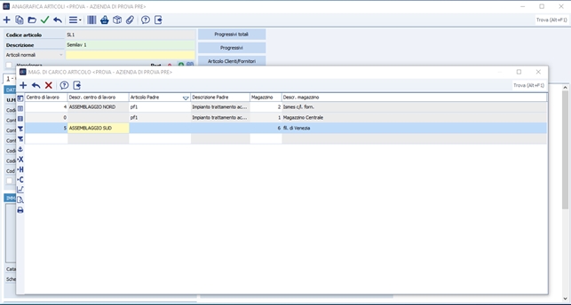 • Il magazzino di carico viene recuperato dall'anagrafica articoli-> Menù strumenti-> "Magazzino di carico per semilavorati" è possibile definire in funzione del padre o del centro che produce il padre il magazzino di carico del semilavorato;