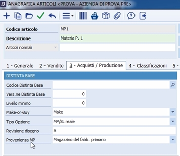 Se si tratta di MP, quindi componenti di acquisto in anagrafica articoli, scheda acquisti/produzione, si attiva il campo "Provenienza MP".