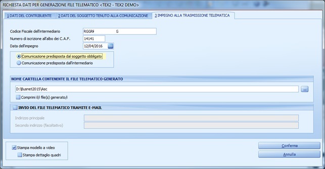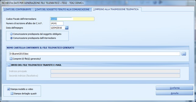 · Compilare tutto il tab 3 "Impegno alla trasmissione telematica" e flaggare su "Comunicazione Predisposta dal soggetto obbligato"