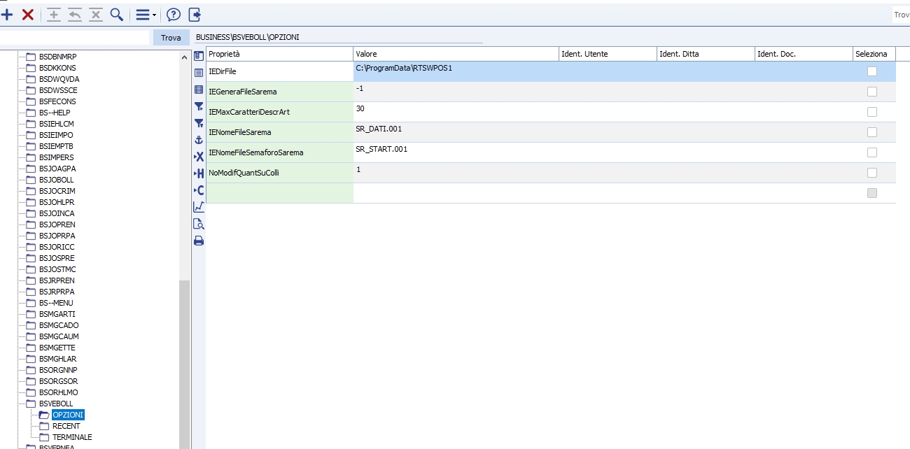 I documenti di tipo corrispettivo con scorporo possono essere stampati su registratore di cassa. L'attivazione della funzione è la stessa prevista per la gestione documenti di Business: nel cartella BSVEBOLL\OPZIONI vanno attivate almeno le seguenti opzioni di registro IEDirFile, IEGeneraFileSarema, IENomeFileSarema, IENomeFileSemaforoSarema. Sono comunque operative tutte le proprietà previste per la stampa dello scontrino da gestione documenti.