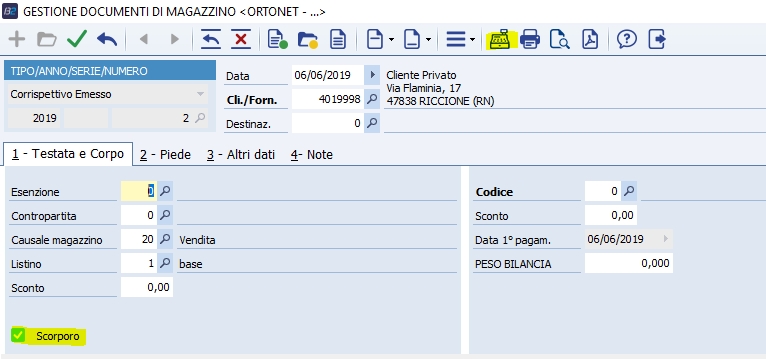Rispetto alla versione Net è stata implementata la stampa dei corrispettivi su registratore di cassa.