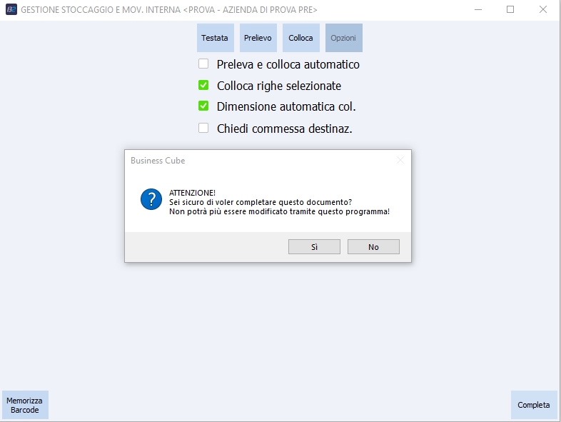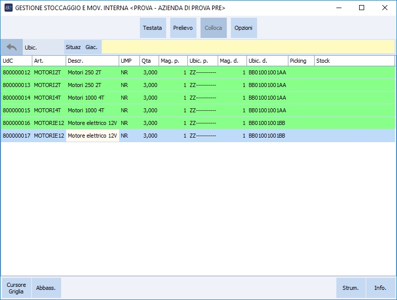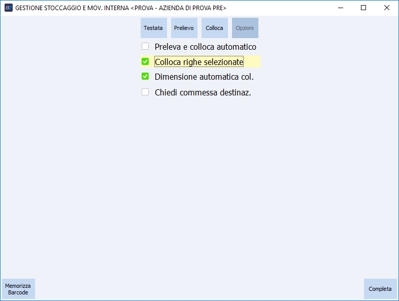 poi passiamo alla fase di colloca e per le varie righe prelevate scegliamo l'ubicazione dove collocarle