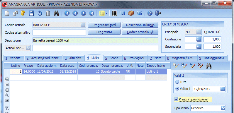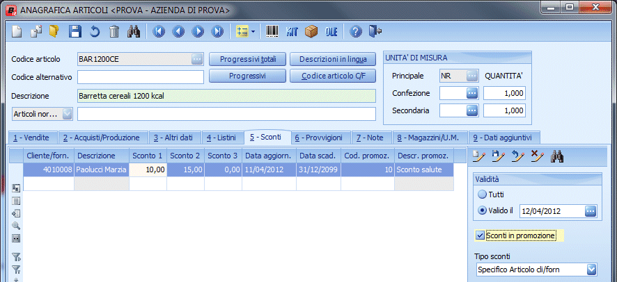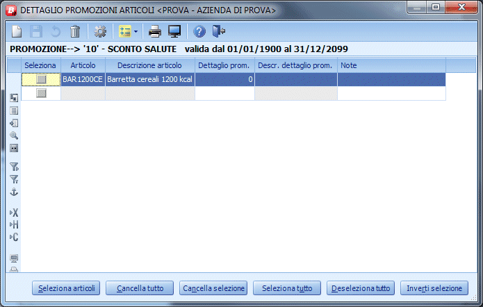 riapriamo poi la promozione creata prima e nel dettaglio inseriamo l'articolo.