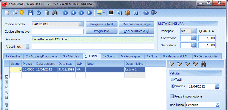 e creiamo un articolo sul quale impostiamo un prezzo "classico"