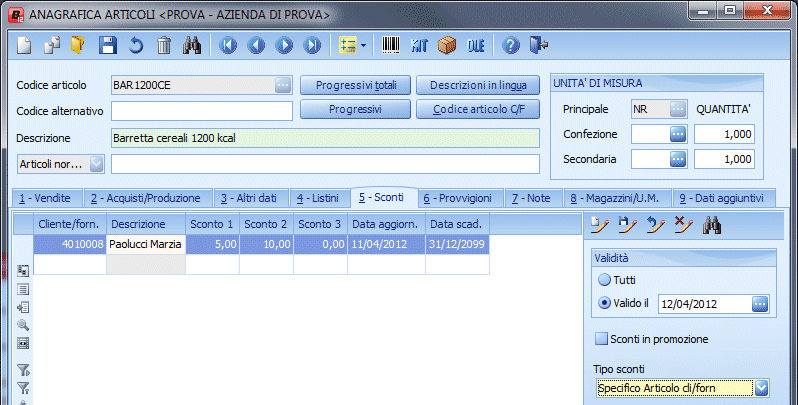 Caso 2: Abilita_Promozioni=0 e Promozioni_come_Rel10=0 In questa configurazione il programma si comporta normalmente e rileva i prezzi, sconti e provvigioni "classici"