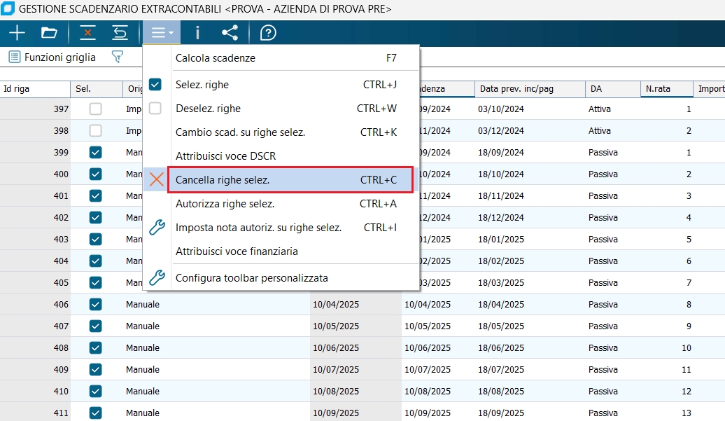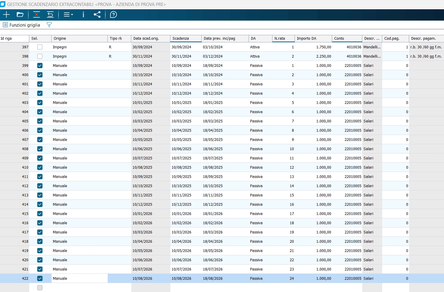 A questo punto confermando le rate vengono inserite nella gestione scadenze extracontabili.