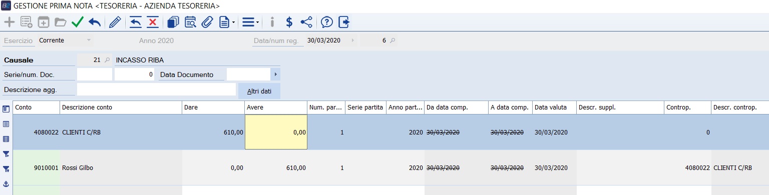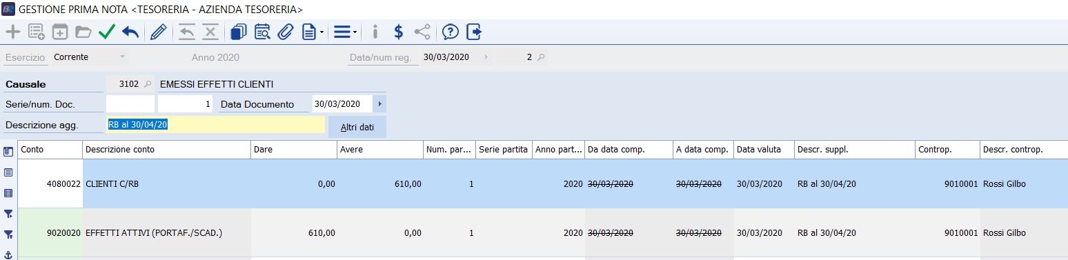 Infine sarà effettuata la registrazione di chiusura del cliente e del conto clienti c/RI.BA.