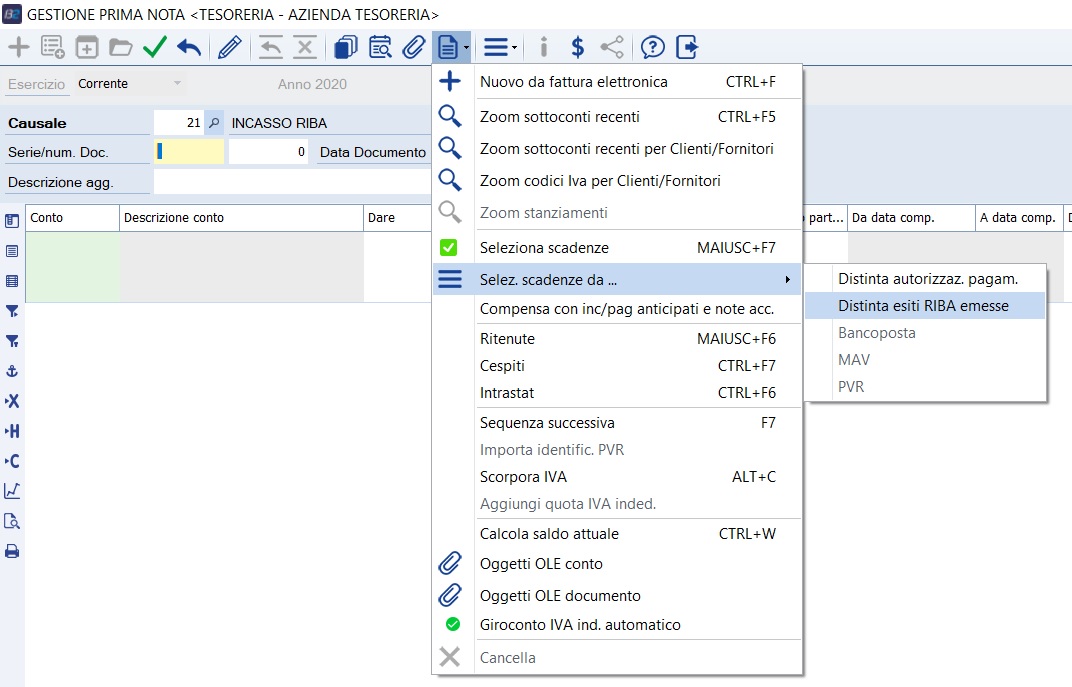 Alla scadenza degli effetti è necessario selezionare una precedente distinta da apposita funzione di Gestione prima nota