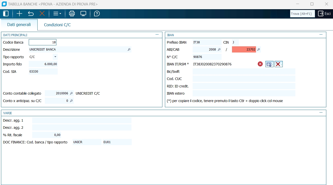- Il riferimento al codice banca;