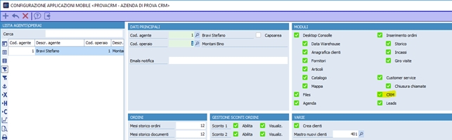 In caso di entrambi i moduli abilitati, tale voce č presente nel menu del Customer Service e non viene replicato su quello del CRM.