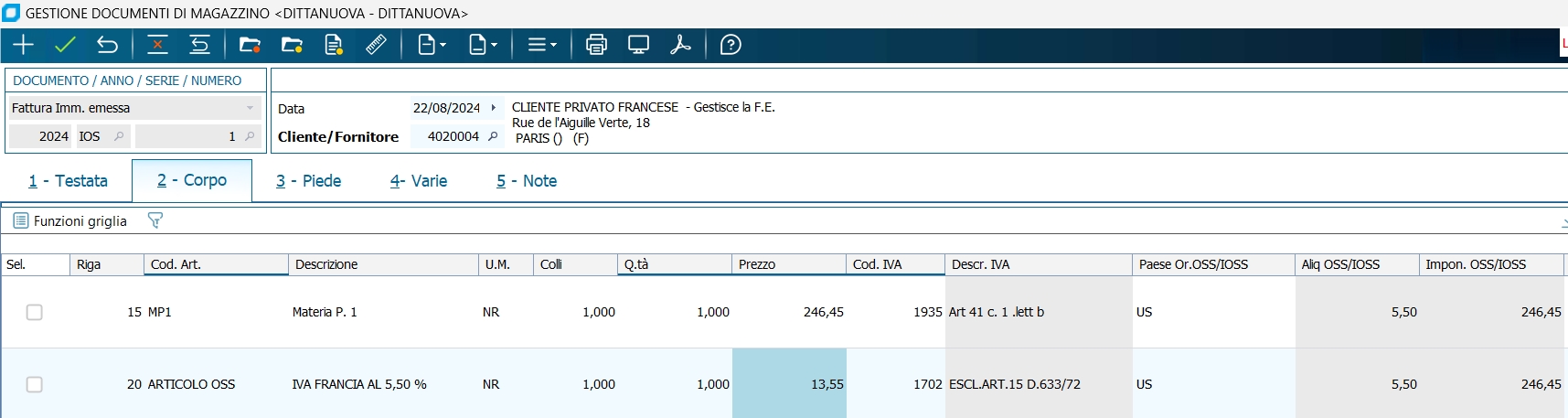Dalla versione SR8 è stata gestita l'IVA OSS anche dal modulo Gestione Punti Vendita (GPV) che lavora allo stesso modo del programma "Gestione documenti di magazzino":