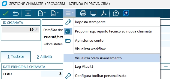 I valori visualizzati rispecchiano fedelmente il dettaglio dei possibili valori presi dal "modello di Avanzamento" associato alla chiamata.