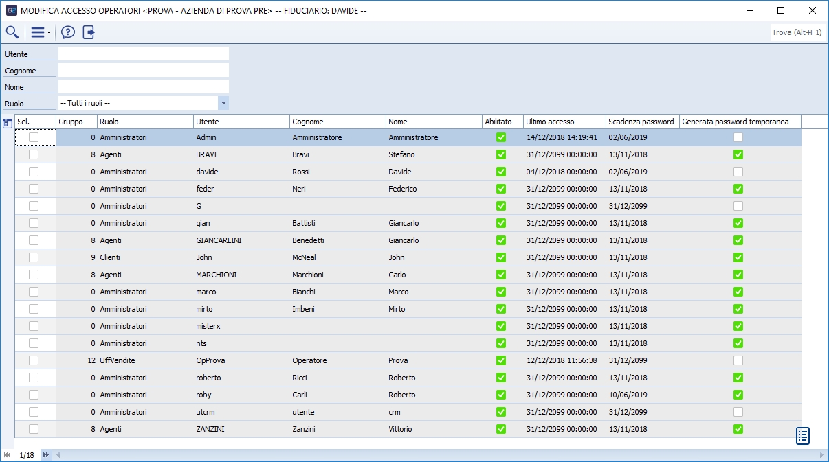 Permette alcune operazioni massive sugli operatori selezionati: