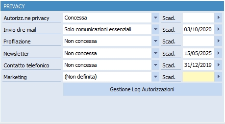 Sono ora disponibili 6 campi parametrizzabili per definire le autorizzazioni alla privacy fornite da clienti, fornitori, leads e obiettivi (solo da Cube 2).