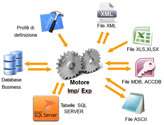 Il programma offre un approccio generalizzato alle problematiche di importazione ed esportazione; sono poi le impostazioni dei profili che identificano e caratterizzano ogni tipo di operazione da compiere all'atto della singola esportazione o importazione. Per creare nuovi profili o modificare quelli forniti è necessaria una buona conoscenza della base dati di Business.