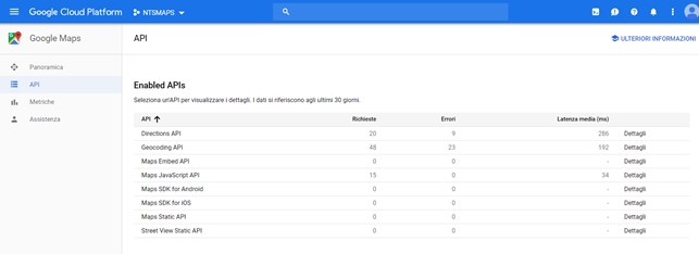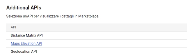 Eventualmente abilitiamo le API aggiuntive che sono necessarie (nell'esempio qui sopra quelle che abbiamo attivato nel nostro profilo)