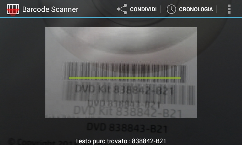 Con la scansione da fotocamera invece verrà avviata l'applicazione di lettura Barcode. A questo punto basterà scansionare il barcode per leggerlo automaticamente: