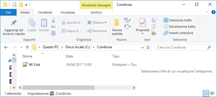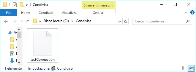 In questo esempio abbiamo condiviso una cartella sul PC con percorso "C:\Condivisa"