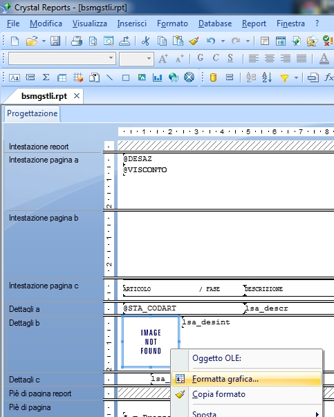 Inserita la nuova immagine nel report, tramite il tasto destro del mouse selezionare 'Formatta grafica...'.