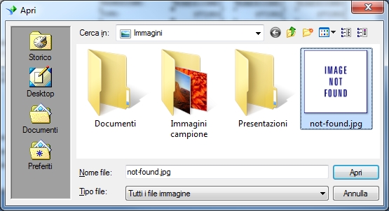 Si consiglia di inserire un immagine di default come da esempio, in modo da mostrare il messaggio di immagine non trovata nel caso non sia presente in alcuni casi l'immagine.