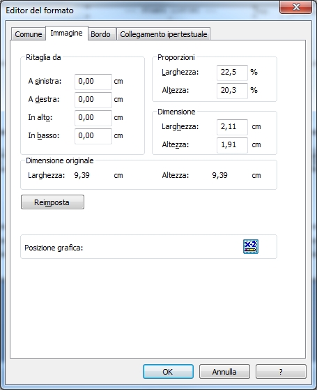 Andare sul tab 'Immagine' e selezionare la formula impostabile 'Posizione grafica'.