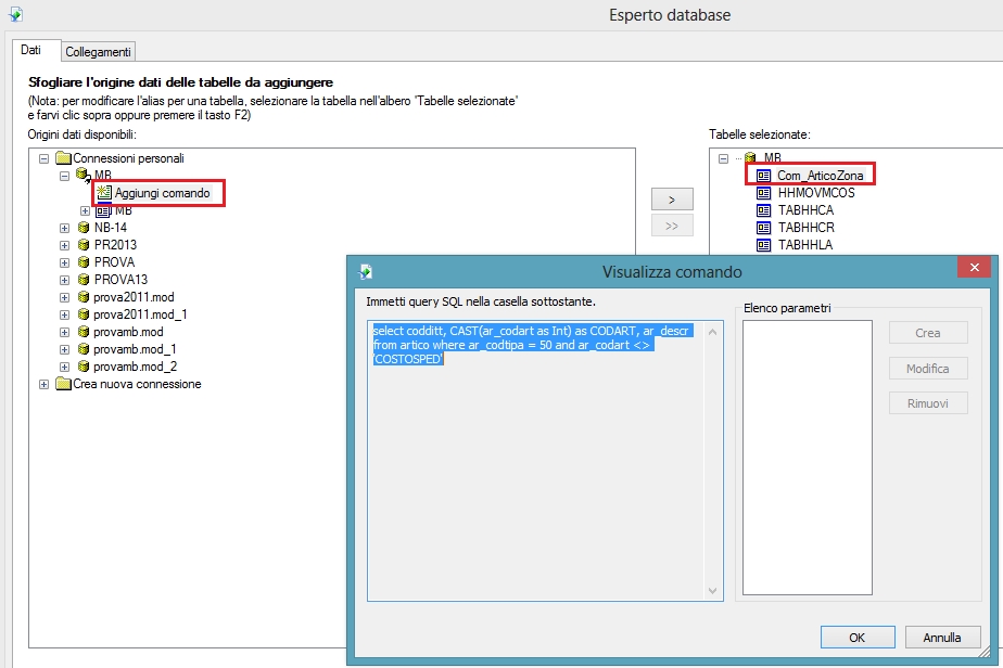 Viste in crystal reports 2008 Per conoscenza in crystal reports 2008, per chi non ne è già a conoscenza, esiste la segeunte funzionalità che può essere utile. A partire da Crystal Reports 2008 si possono aggiungere anche delle 'viste' create direttamente nel report e non nel database. Funziona con sorgente dati ODBC di tipo SQL Server, con il comando 'Aggiungi comando' è possibile inserire una query per creare una sorta di 'vista' che può essere rinominata e poi collegata alle altre tabelle.